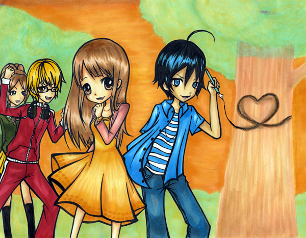 Moritaka, Takagi, Azuki and Miyoshi from Bakuman