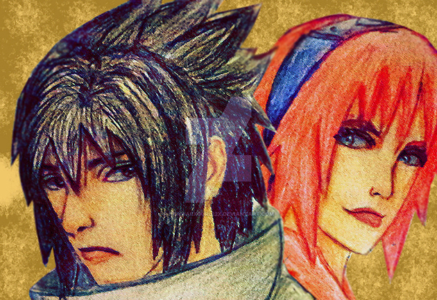 Sasuke and Sakura fan art by Aileen!