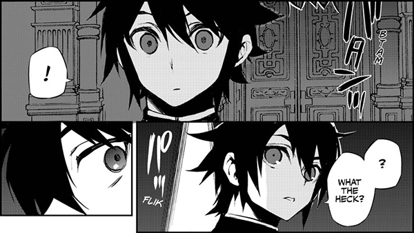 Another guy who’s seen a lot of crazy stuff is Yuichiro from Seraph of the End: Vampire Reign—vampires, demons, humans with some kind of dark agenda. What the heck, indeed, Yuichiro! This series is so full of mysteries that I foresee a whole lot of NANIs in the future.