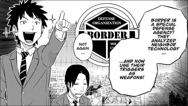 It looks like the story in World Trigger is beginning to firm up. Bits and pieces of exposition are beginning to be interspersed into the dialogue. And all in a very natural way or humorous way, which is the sign of a good storyteller. I’m also a fan of the alien design of the Neighbors. Kind of reminds me of some of the early Hollows in Bleach.