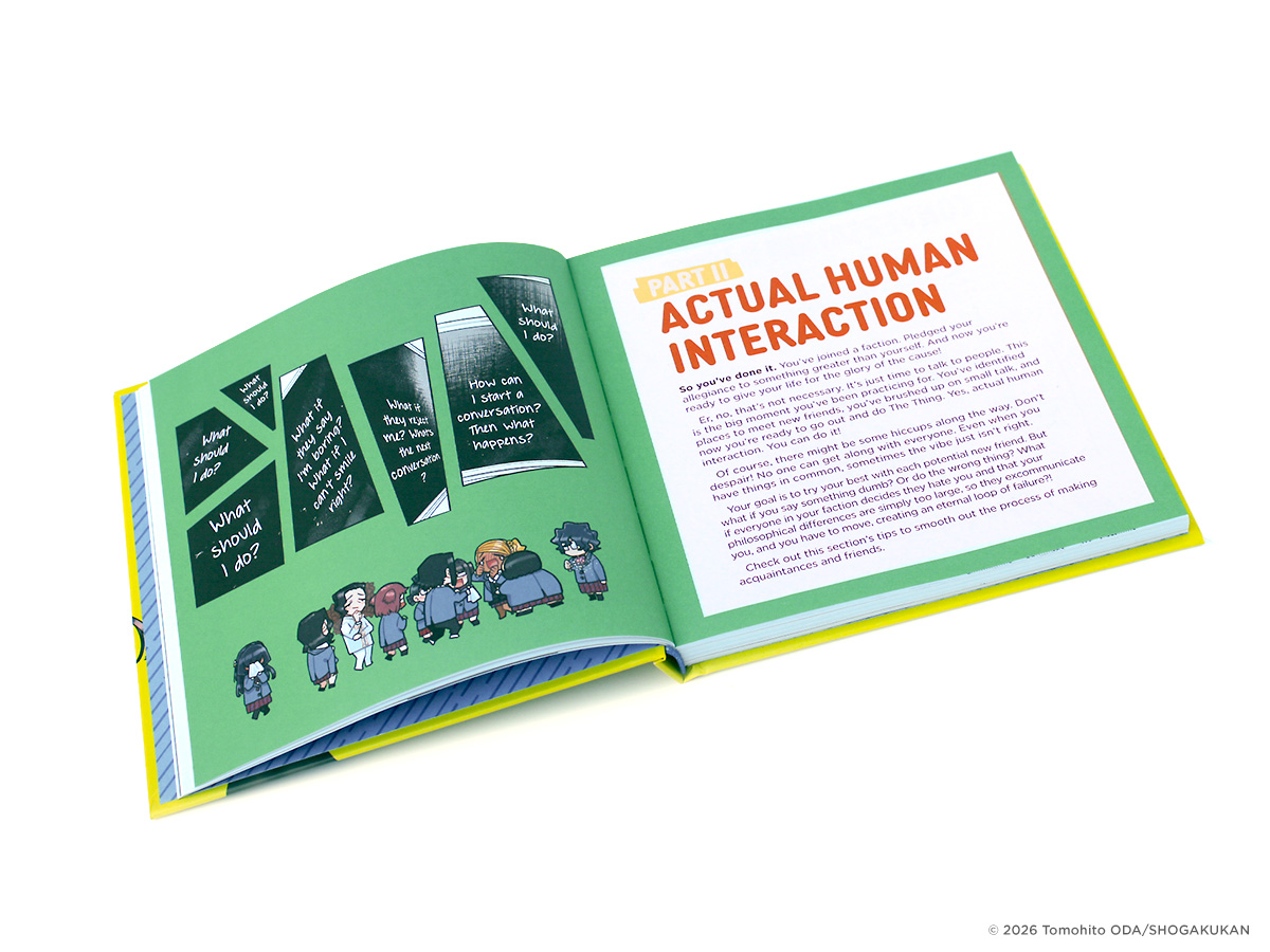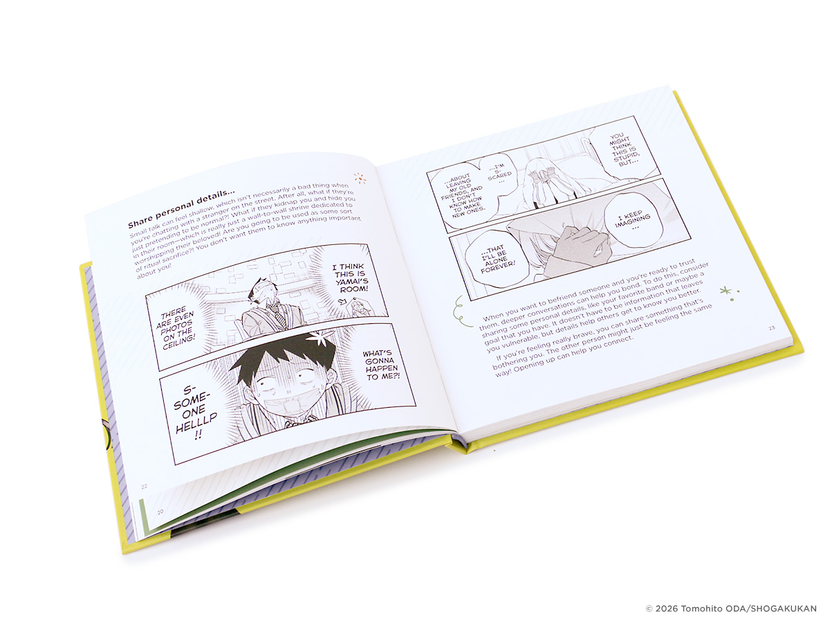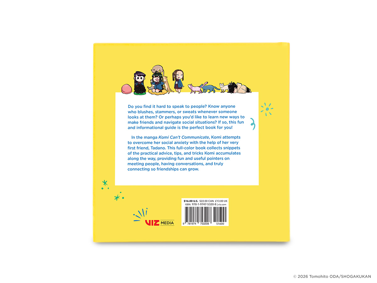 In the manga Komi Can’t Communicate, Komi attempts to overcome her social anxiety with the help of her very first friend, Tadano. This full-color book collects snippets of the practical advice, tips, and tricks Komi accumulates along the way, providing fun and useful pointers on meeting people, having conversations, and truly connecting so friendships can grow.